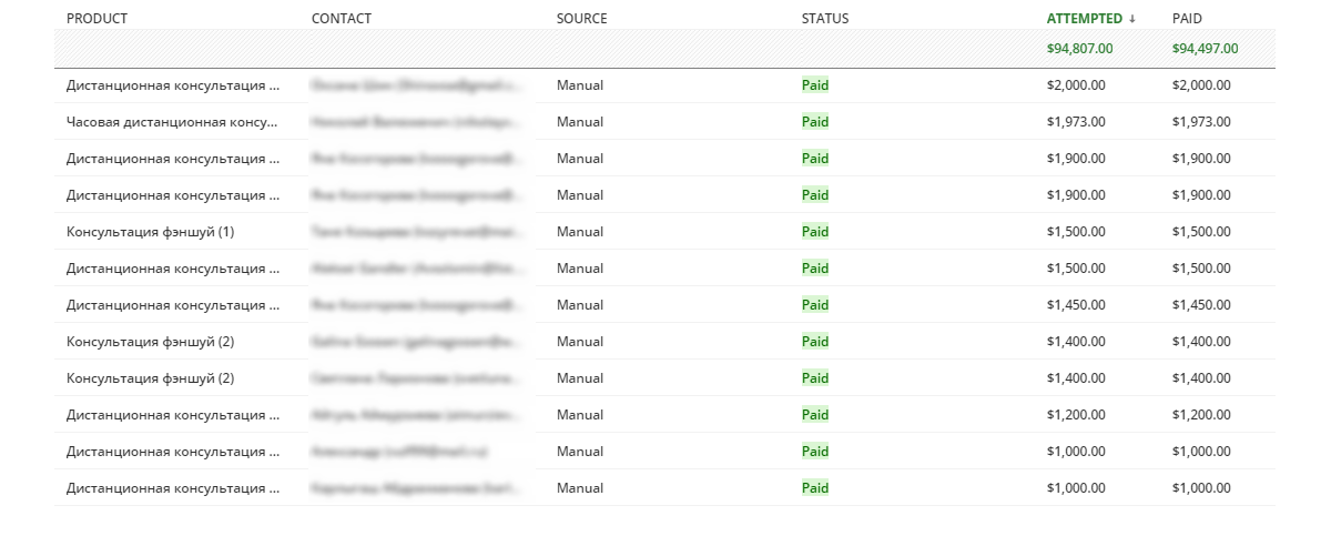 Общий доход с консультаций фэншуй